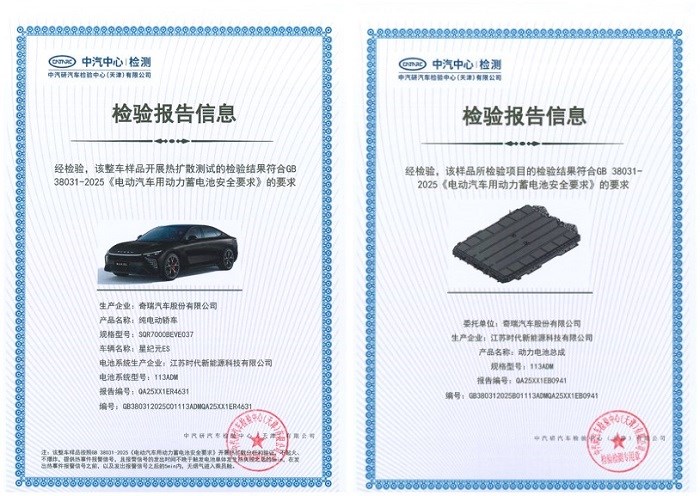 GB 38031—2025《电动汽车用动力蓄电池安全要求》强制性国家标准由工业和信息化部组织制定,并于2026年7月1日起实施,被誉为 “史上最严电池安全令”,对电池的各项安全性能提出了极高要求。新标准进一步明确了待测电池的温度要求、上下电状态、观察时间和整车测试条件,技术要求从此前的着火或爆炸前5分钟提供热事件报警信号,调整为不起火、不爆炸,并且烟气不对乘员造成伤害等。全新2025款星纪元ES纯电作为现款车型,是首批获得该安全标准的车型,实现对用户安全进一步保障,购买更放心。